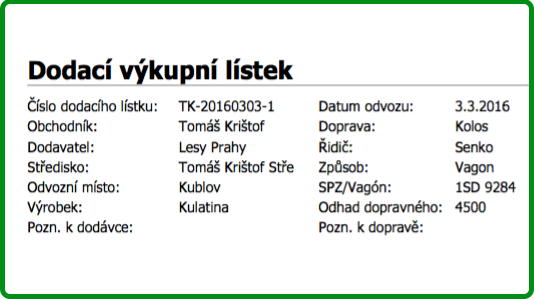 Hlavička Dodacího Lístku